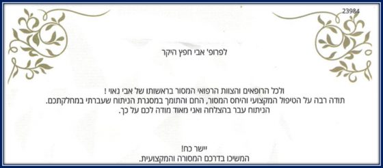 ד"ר אריאל מרגוליס – תודה על הטיפול המסור והאיכפתיות!