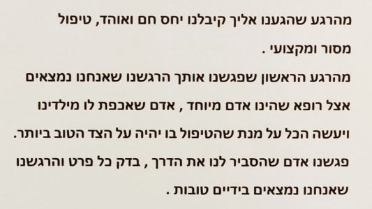 ד"ר מרגוליס היקר – תודה לך על טיפול נפלא לאורך כל הדרך!