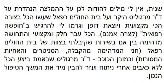 פרופ' לונץ היקרה – אשרינו שזכינו לטיפולך המקצועי!