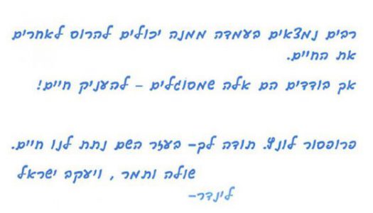 לפרופ' לונץ היקרה – תודה רבה על ידי הזהב שלך!