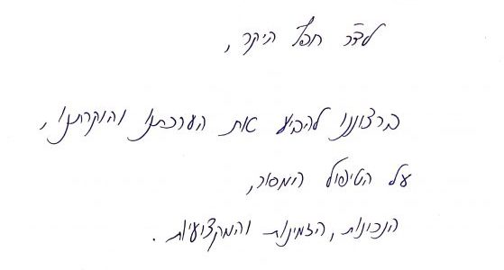 לד"ר חפץ היקר, ברצוננו להביע את הערכתנו והוקרתנו…