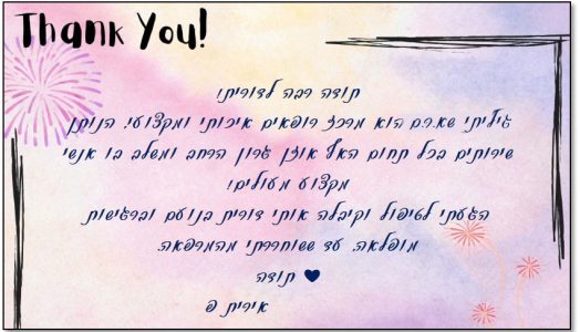 לבת אל – תודה רבה! על החיוך, ההבנה והסבלנות!