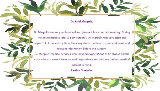 Dr. Margulis – Thank you for your personal treatment that was beyond expectations!