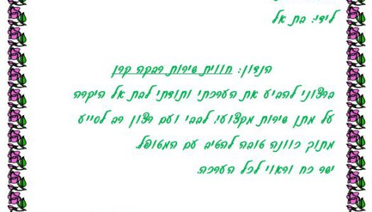 בת אל היקרה – תודה על שירות מקצועי, לבבי ורצון רב לסייע!