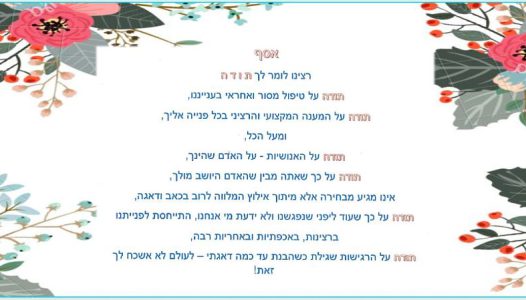 Dear Bat El – Thank you for your extra efforts and dedication!