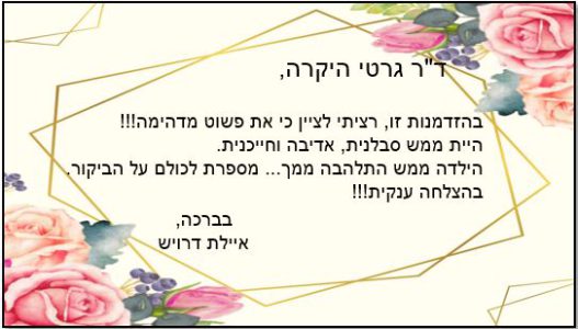 ד"ר גרטי היקרה – הילדה ממש התלהבה ממך – תודה!