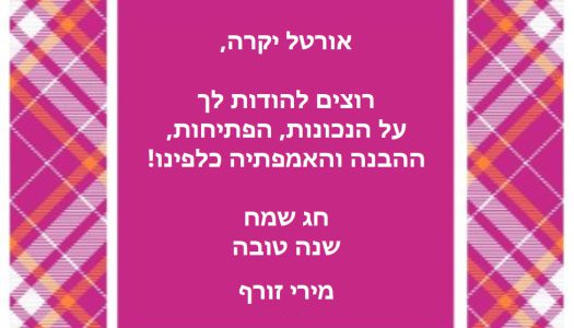 אורטל היקרה – תודה על ההבנה והאמפתיה כלפינו!