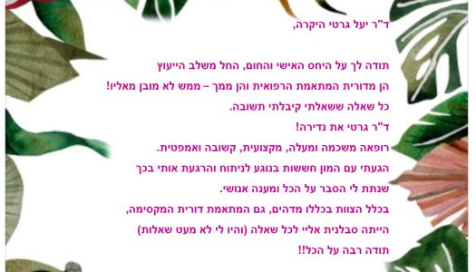 ד"ר גרטי ודורית היקרות – תודה על היחס האנושי והאישי והטיפול המקצועי והמסור!