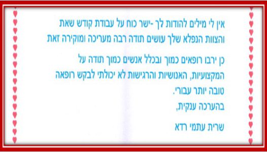 פרופ' חפץ היקר – תודה רבה לך ולכל צוות א.ר.ם